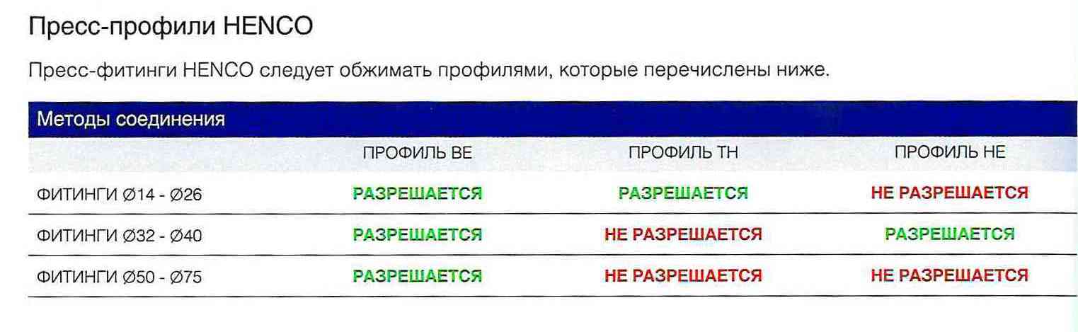 Выдержка их техкаталога Henco :