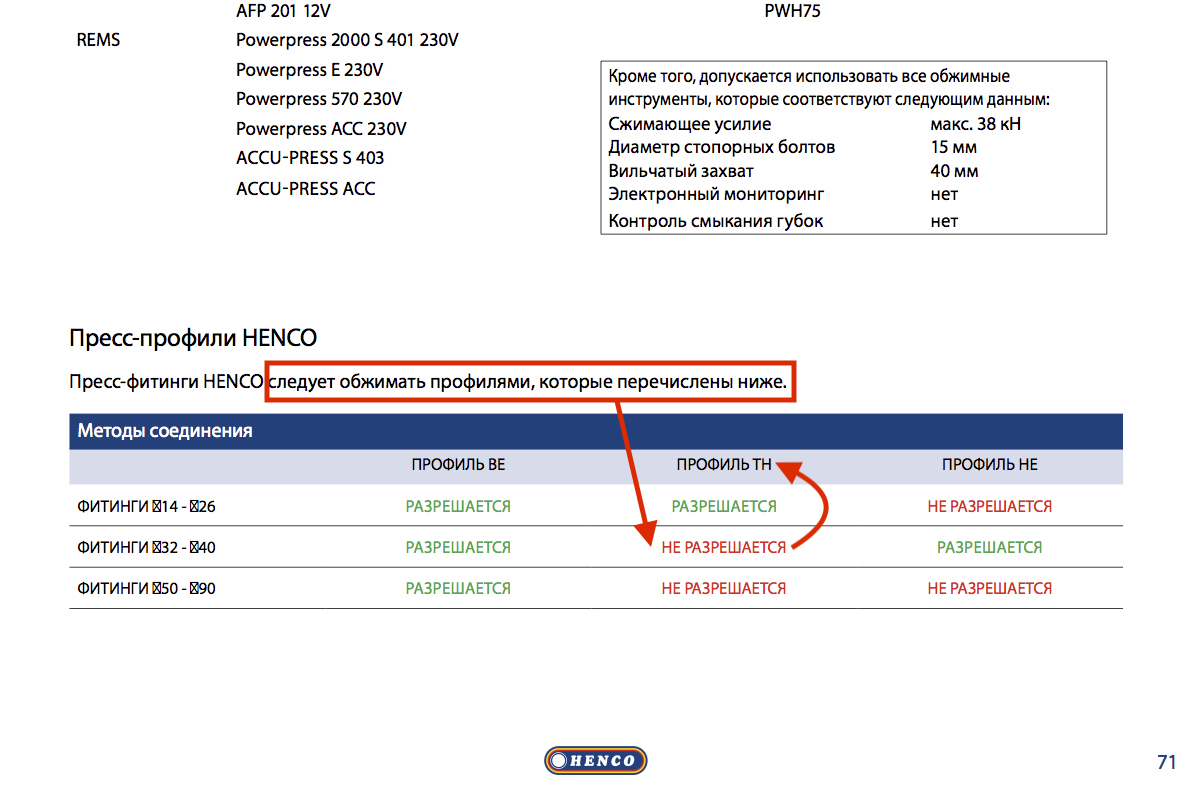 Если не сложно, поясните в чем критичность обжатия гильзы Ø 32 Henco профилем именно TH, чем этот HE отличается? Если это сложно объяснить на словах, тогда пойду терзать представителей Henco на Акватерм.