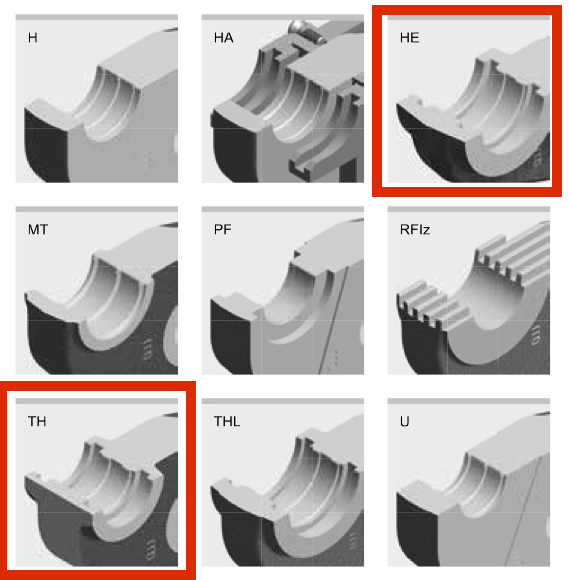 То есть, для фитингов 16-26 мм применяются только профили ВЕ и ТН. Для фитингов 32 и 40 мм применяются только профили ВЕ и НЕ. Для фитингов 50 мм и более применяется только профиль ВЕ.