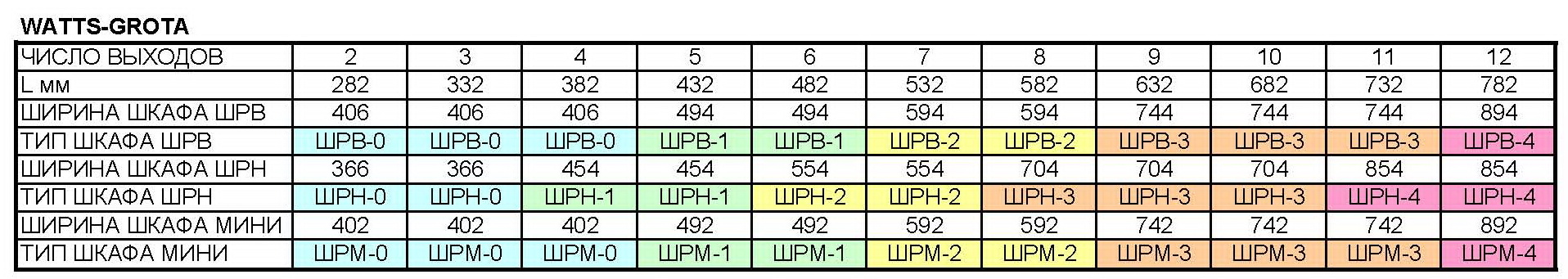 Соответствие шкафов и коллекторов Watts