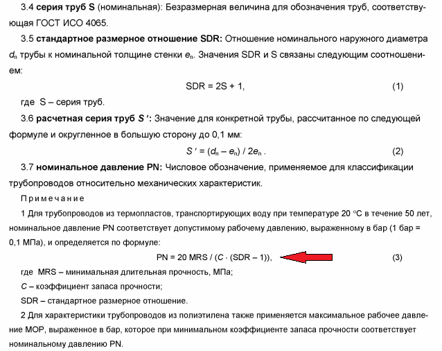 Взаимосвязь SDR и PN описана в ГОСТ 32415-2013 "Трубы напорные из термопластов и соединительные детали к ним для систем водоснабжения и отопления. Общие технические условия" в пункте 3.7, определение SDR - там же в пункте 3.5.