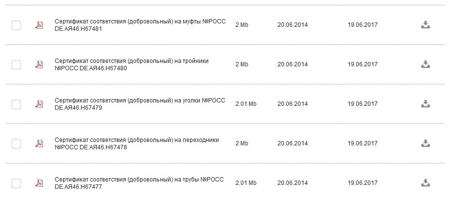 Все сертификаты есть на сайте Дюйм, но они сделаны производителем непривычно, по формам соединений.
