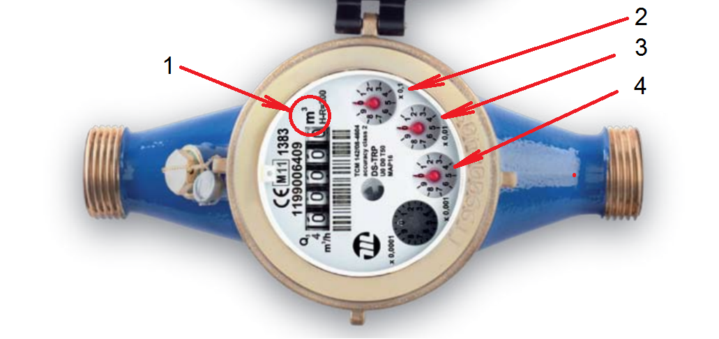 стрелочные циферблаты показывают расходы менее 1 м куб.