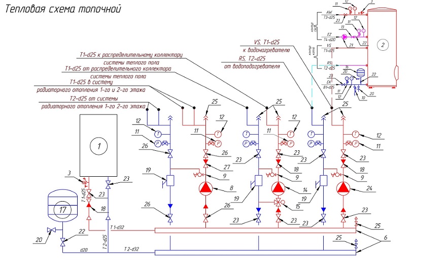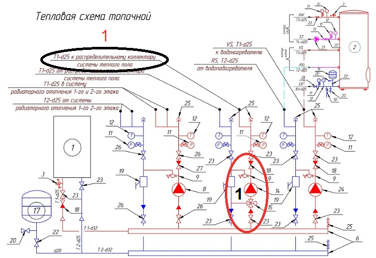 Если честно - не понял смысла использования насосно-смесительной группы на коллекторах ТП (поз.2), если есть насосно-смесительный модуль на 1 основном коллекторе...