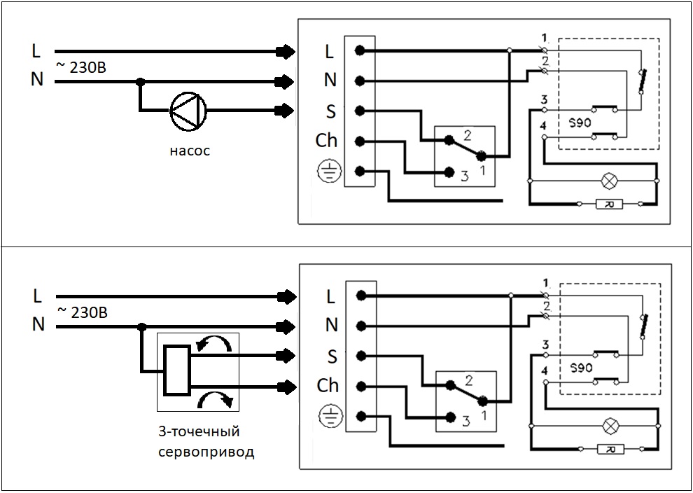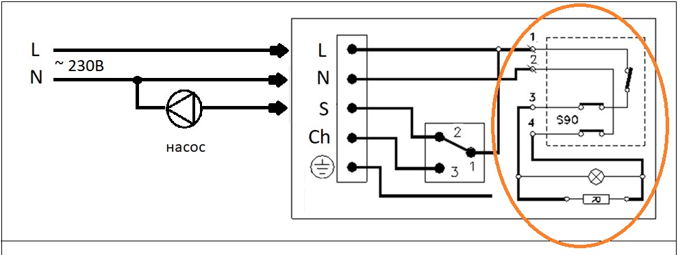 Василий, жёлтой стрелкой указано на подключение насоса к клемме Ch. Это наверное ошибка, т.к. на первой схеме насос подключается к S. Не так ли или это что-то другое?