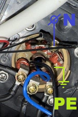 подключить фазовый провод к клеммам термостата, на которых уже стоит перемычка, см. фото: Подключить нулевой провод к клемме на ТЭНе, а заземление подключить на корпус ТЭНа, как показано на фото:
