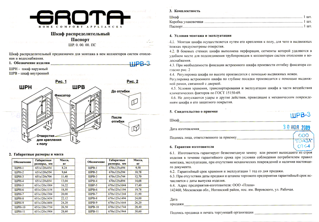 Паспорт на сантехнические шкафы