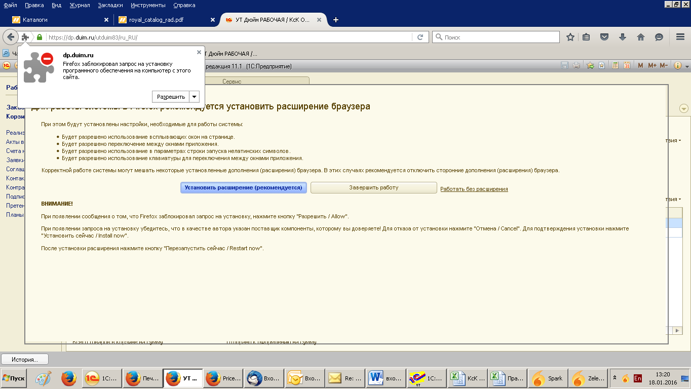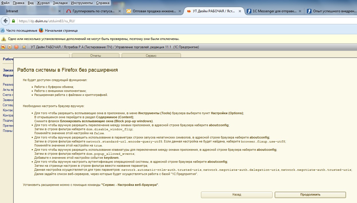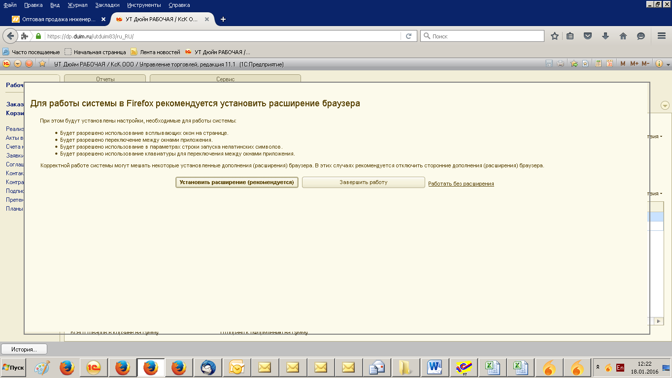 К сожалению, при работе в ПЧ через бразуер Mozilla Firefox версии 43.0 и выше, браузер предлагает установить расширение.