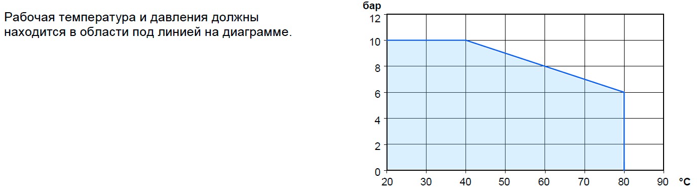 Cуществует зависимость макс. давления от температуры подачи теплоносителя.