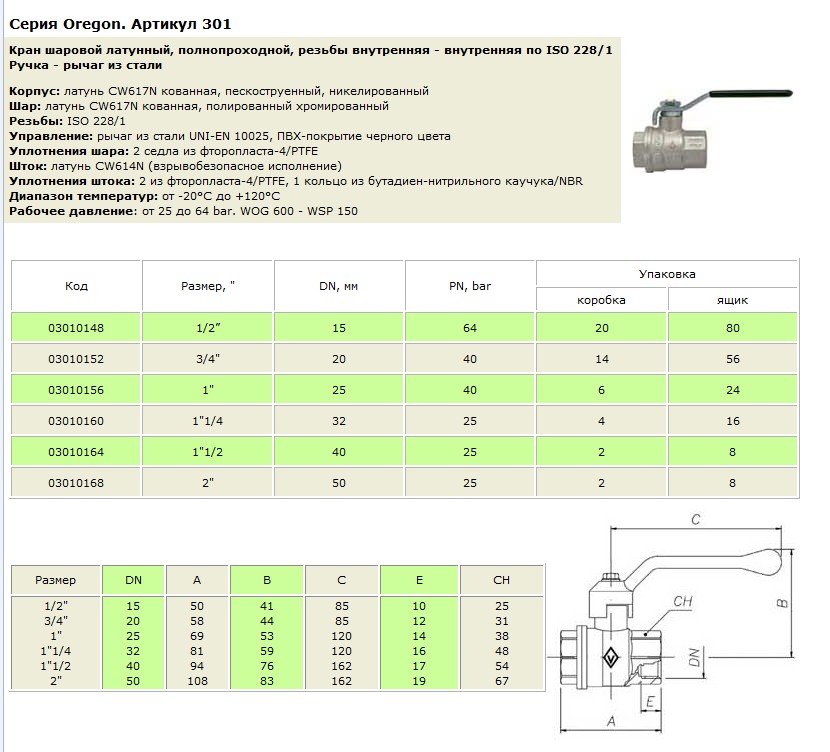 03000163 и 03000169 (Кран ВВ 1/2' и 3/4' ручка OREGON серия 300 полный проход)