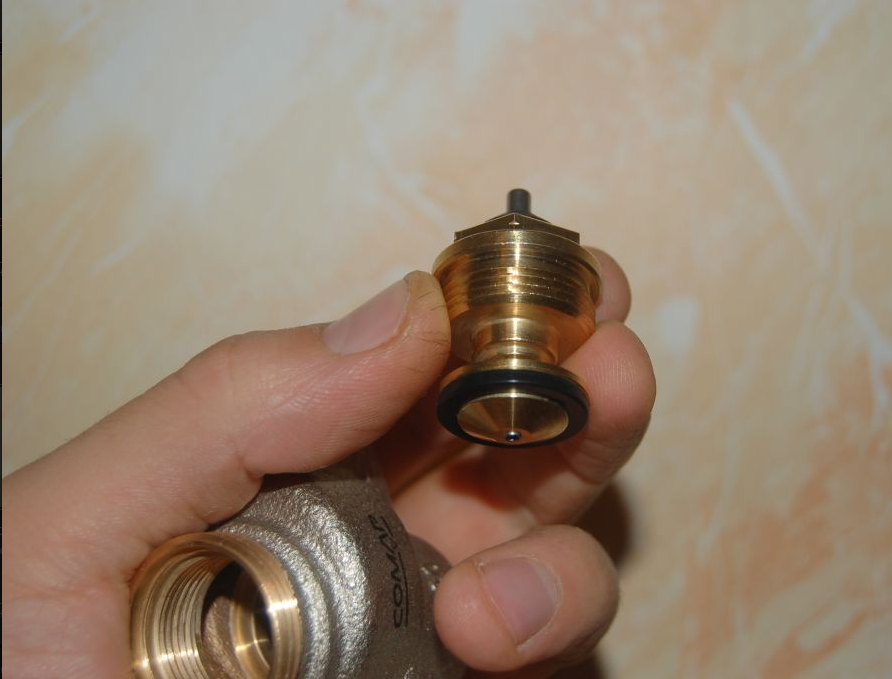 Вот фото: № 1 - скрин из указанного выше ролика (вставка не имеет резинового уплотнительного кольца!), № 2 и 3 - процесс выкручивания вставки из г-образного клапана Comap менеджером Flamco (вставка имеет уплотнительное кольцо).